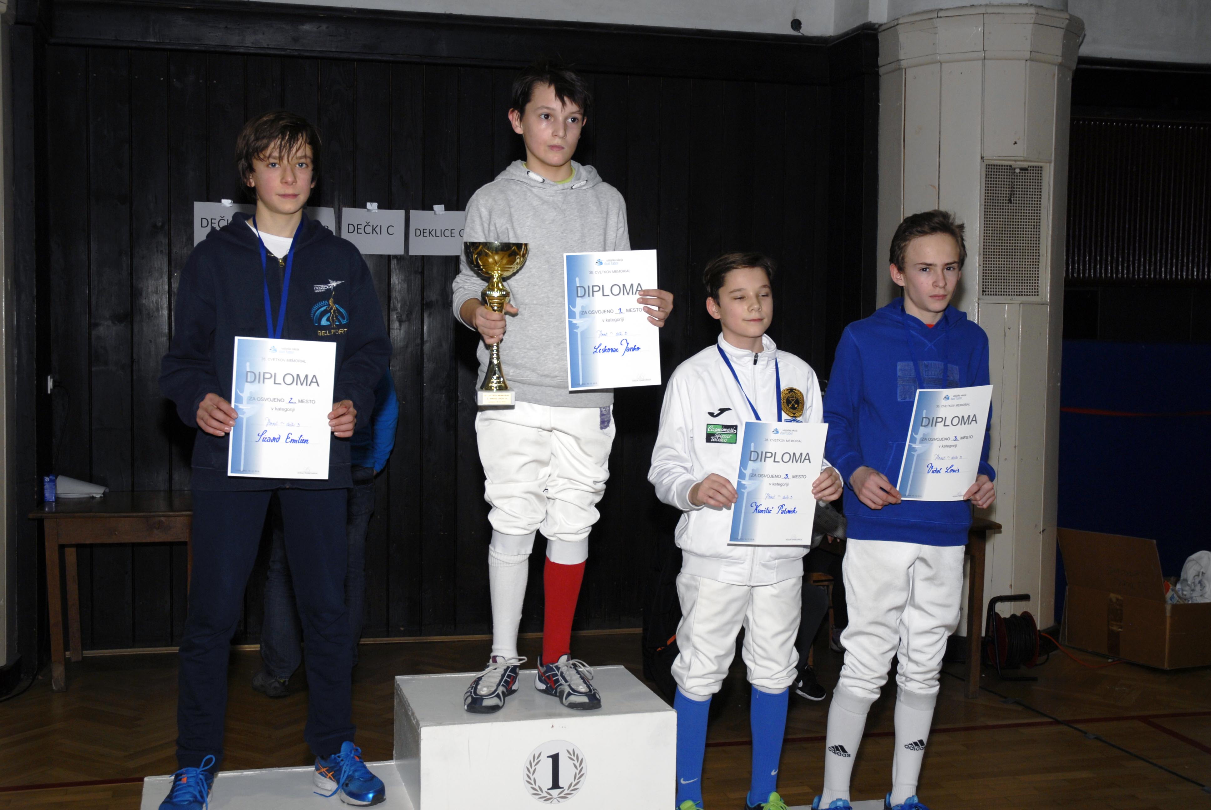 Memorijal Rudolf Cvetko 2016 – Mlađi kadeti, do 14 godina: 2.Emilien Sicard, 1.Janko Leskovac, 3.Patrick Kunštić i Louis Vidal.