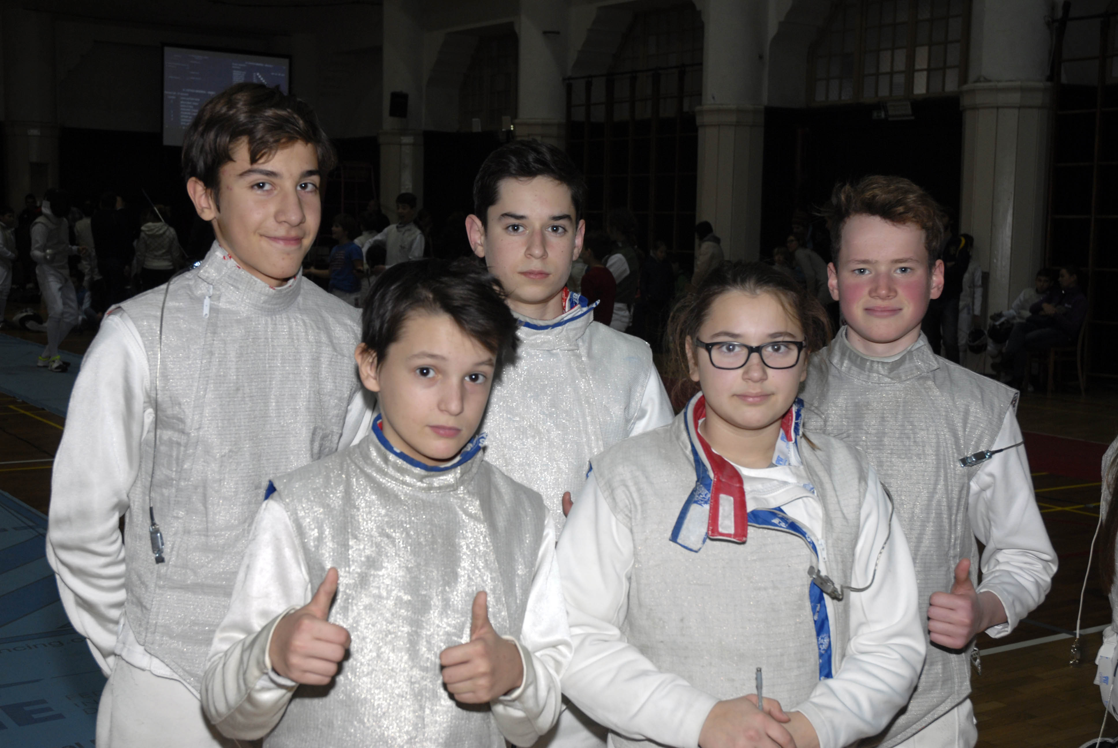 Mačevaoci Zagrebačke škole mačevanja na Memorijalu Rudolfa Cvetka u Ljubljani, 18.12.2016. Noa Nikolić, Janko Leskovac, Borna Špoljar, Lara Špoljar i Jan Buben.