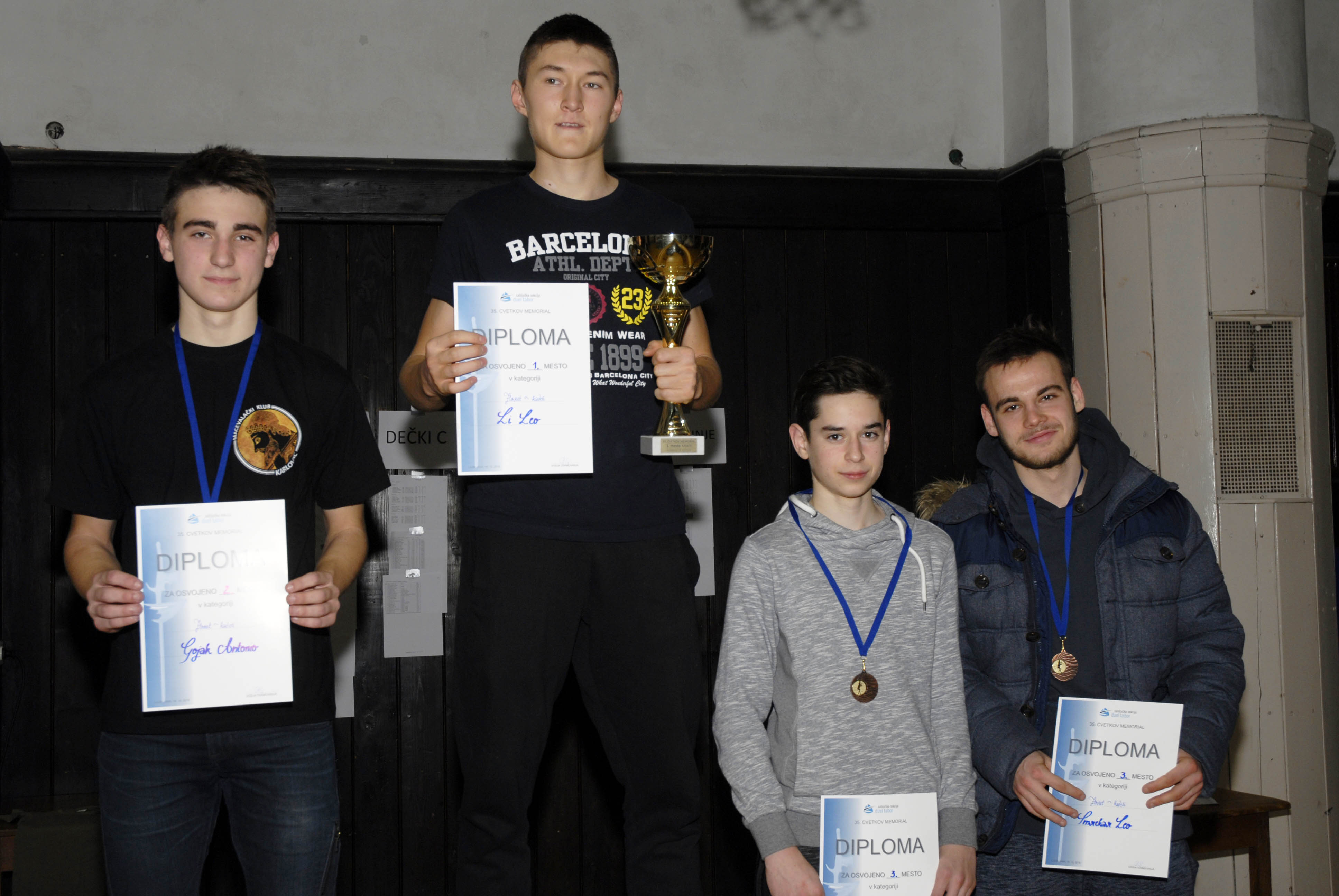 Memorijal Rudolf Cvetko 2016 – Kadeti, do 17 godina: 2.Antonio Gojak, 1.Leo Li, 3.Borna Špoljar i Leo Smrekar.